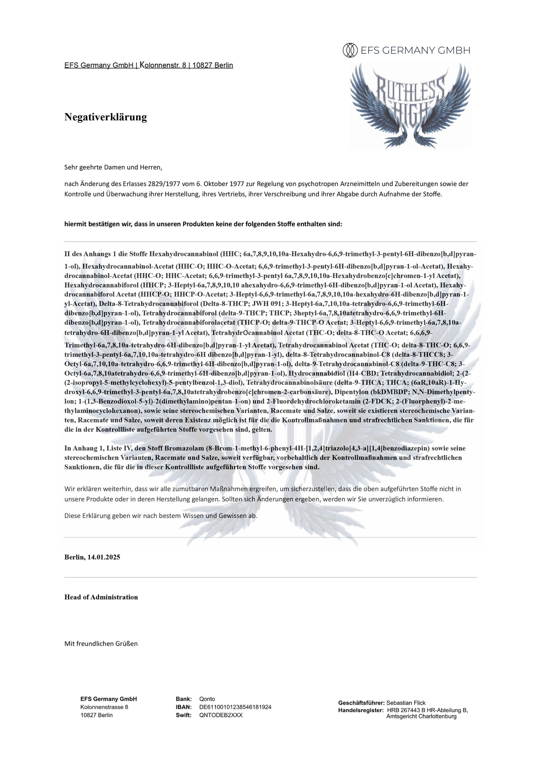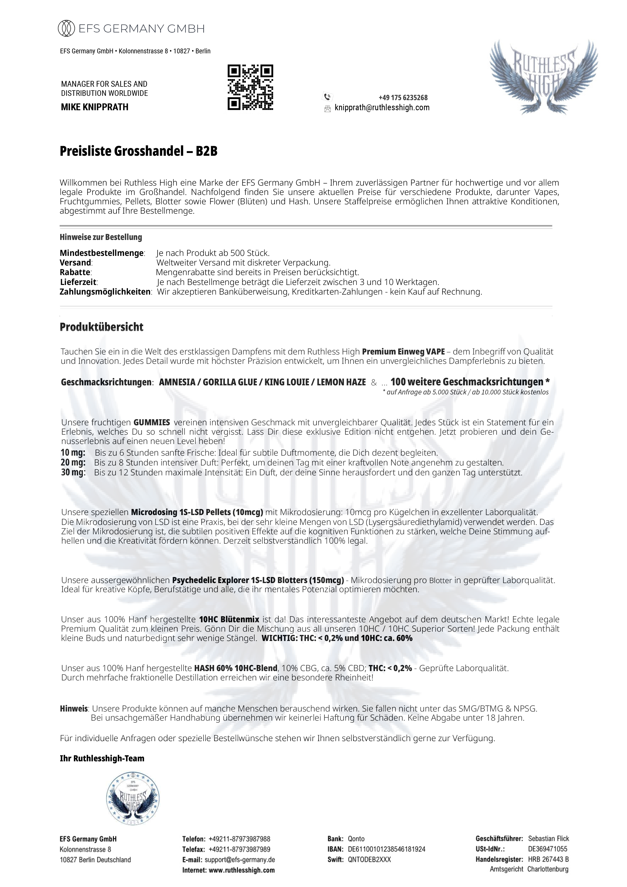 Willkommen bei Ruthless High eine Marke der EFS Germany GmbH – Ihrem zuverlässigen Partner für hochwertige und vor allem